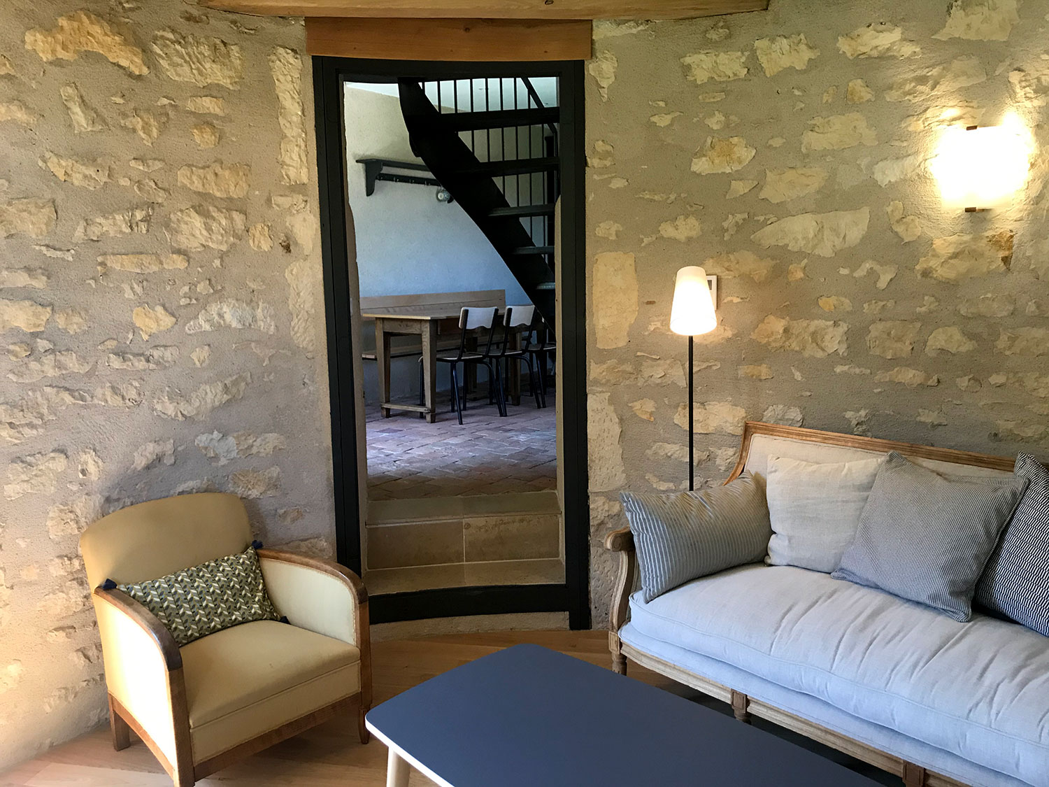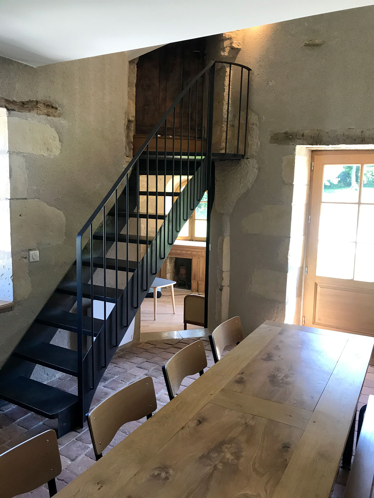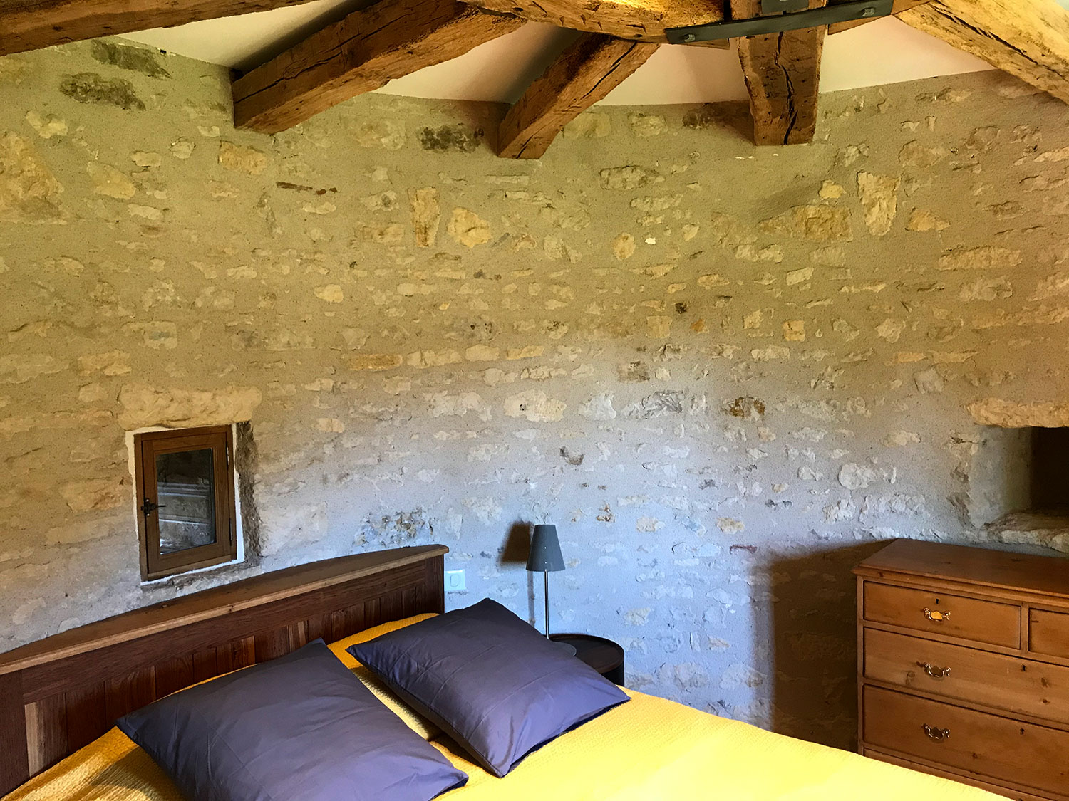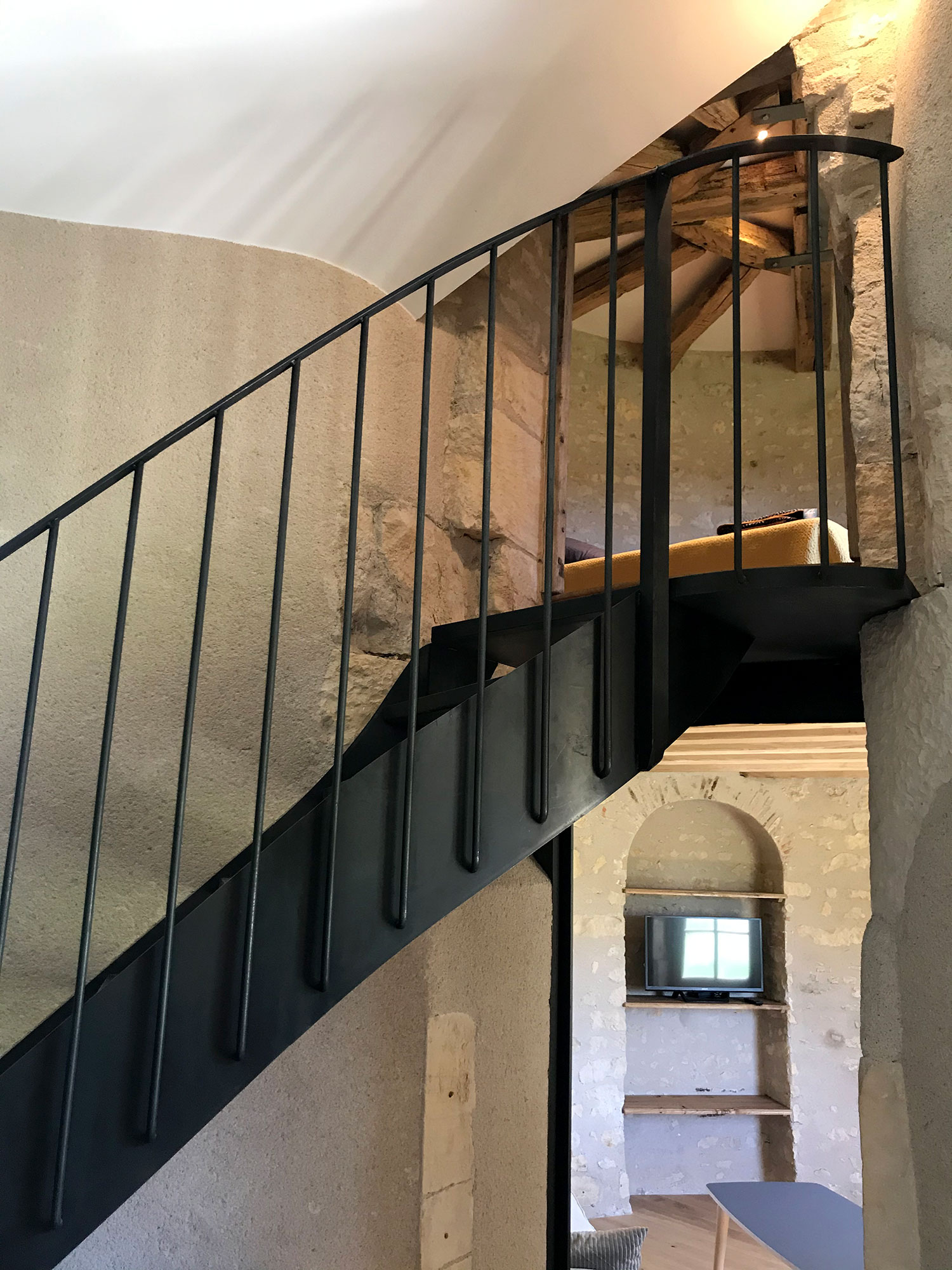 La tour de Lupy est attenante à une grange ancienne. Cet ensemble a été complètement rénové et aménagé en gîte. La particularité du chantier : la création d’escaliers en serrurerie sur-mesure pour distribuer les différents espaces nuit, notamment la chambre ronde à l’étage de la tour. Une piscine a été construite au pied de la tour, intégrant des matériaux tels que la pierre de Bourgogne pour s’assortir à l’existant.