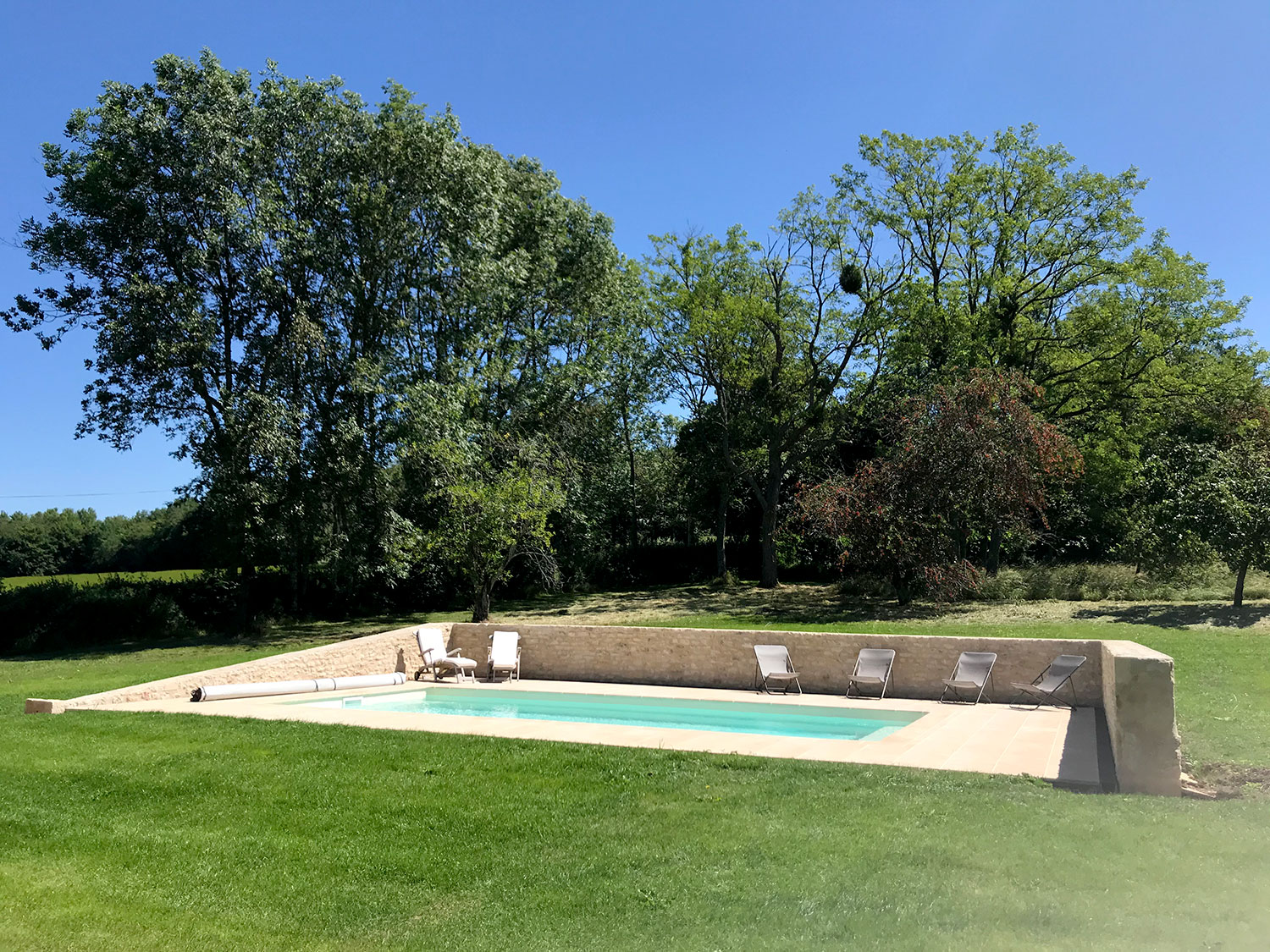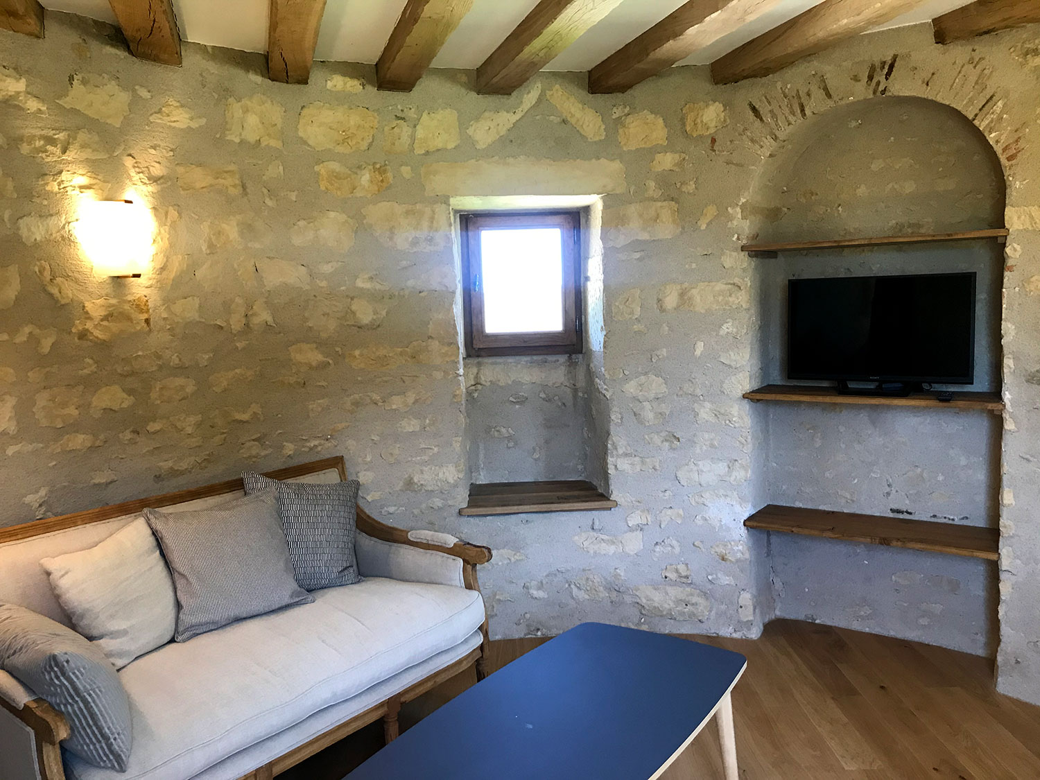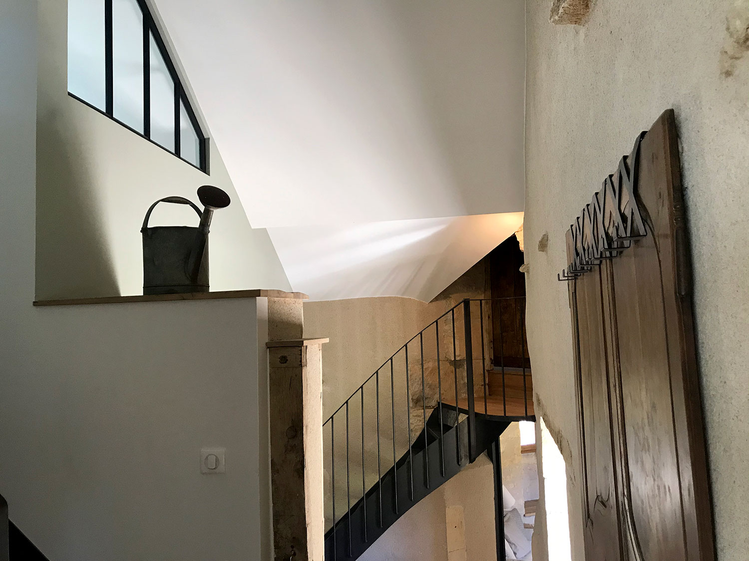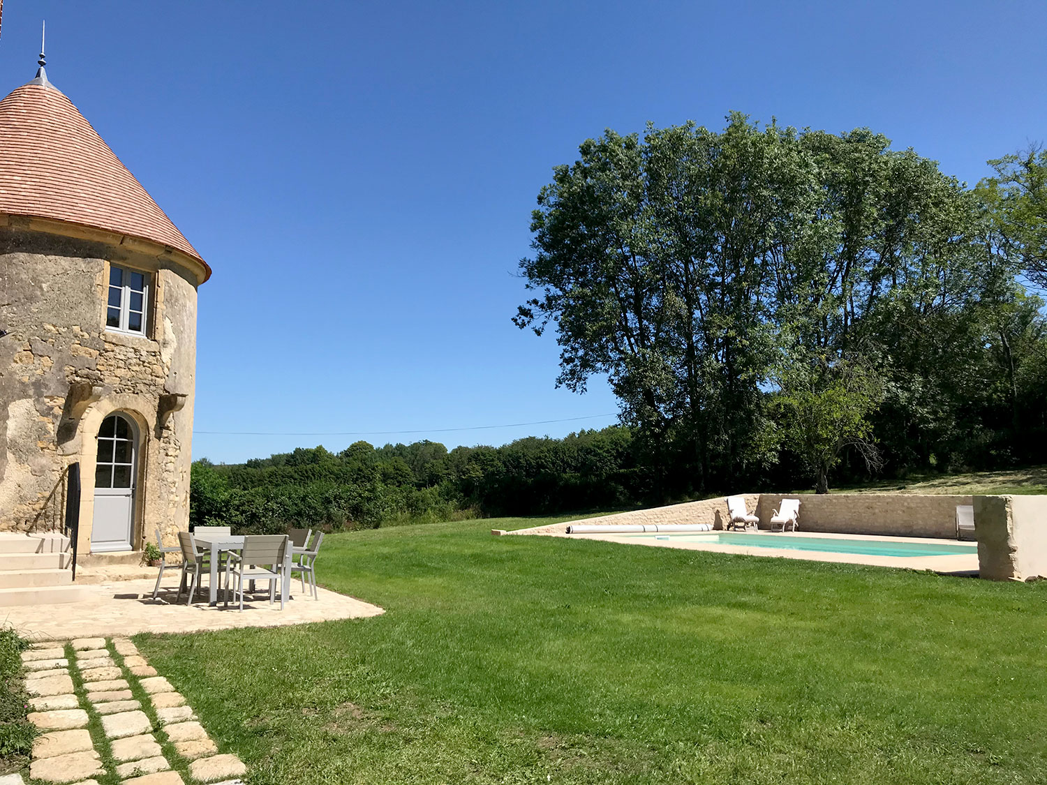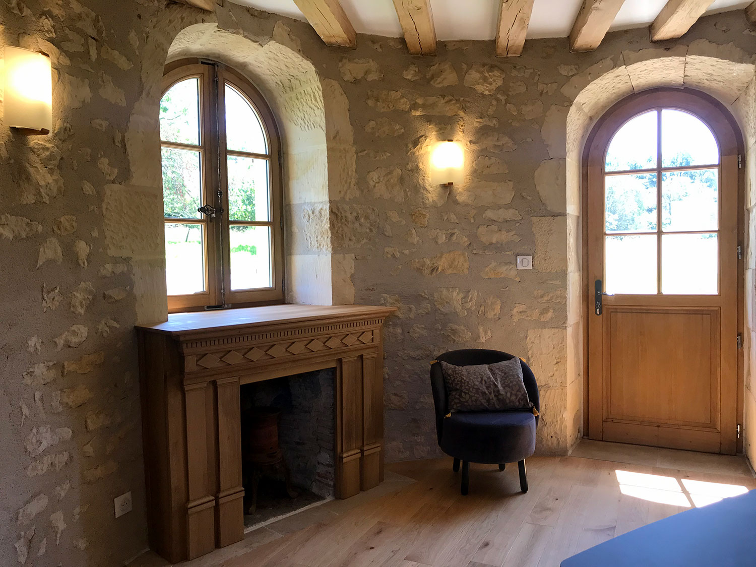 La tour de Lupy est attenante à une grange ancienne. Cet ensemble a été complètement rénové et aménagé en gîte. La particularité du chantier : la création d’escaliers en serrurerie sur-mesure pour distribuer les différents espaces nuit, notamment la chambre ronde à l’étage de la tour. Une piscine a été construite au pied de la tour, intégrant des matériaux tels que la pierre de Bourgogne pour s’assortir à l’existant.