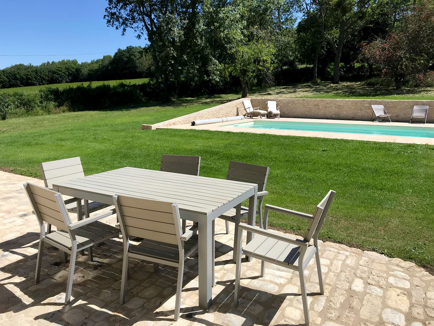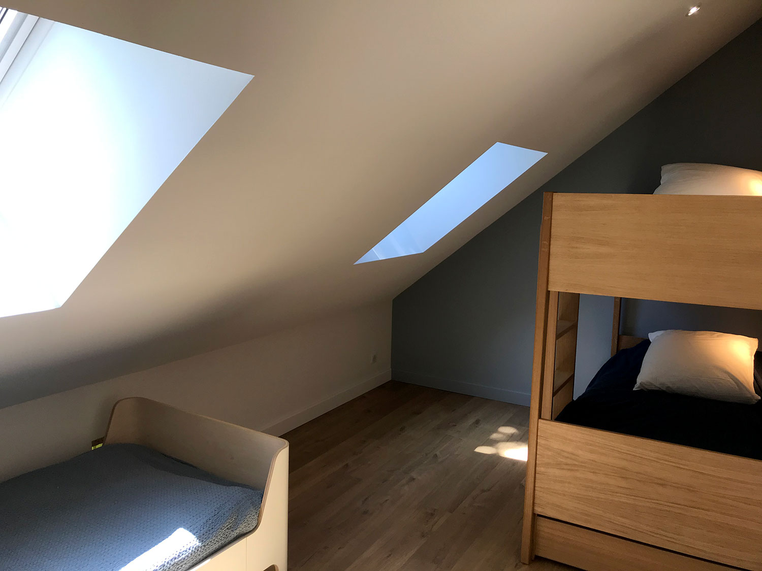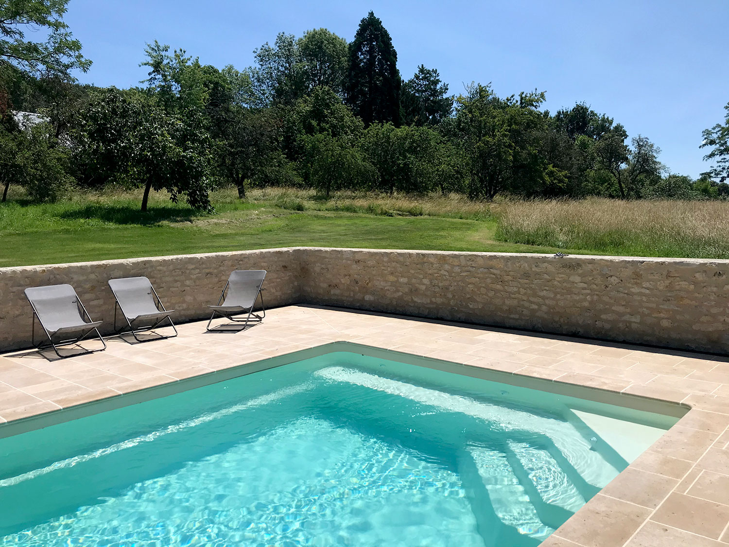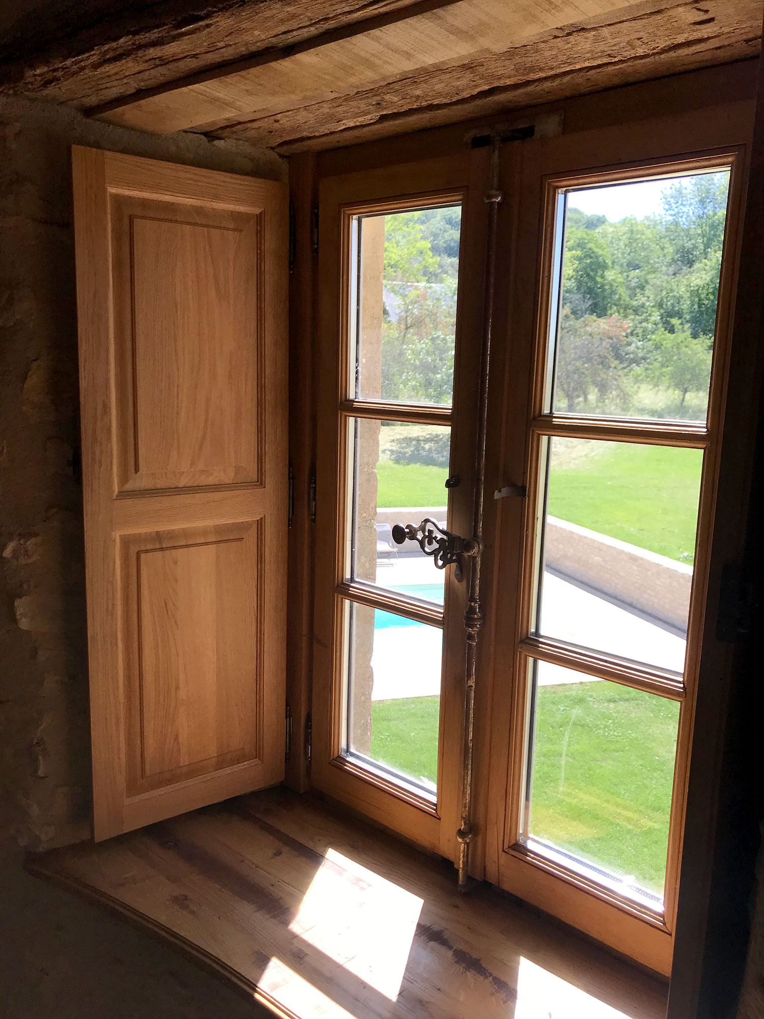 La tour de Lupy est attenante à une grange ancienne. Cet ensemble a été complètement rénové et aménagé en gîte. La particularité du chantier : la création d’escaliers en serrurerie sur-mesure pour distribuer les différents espaces nuit, notamment la chambre ronde à l’étage de la tour. Une piscine a été construite au pied de la tour, intégrant des matériaux tels que la pierre de Bourgogne pour s’assortir à l’existant.